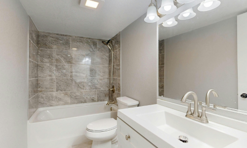 Complete bathroom plumbing update including new fixtures, pipes, and water heater installation.